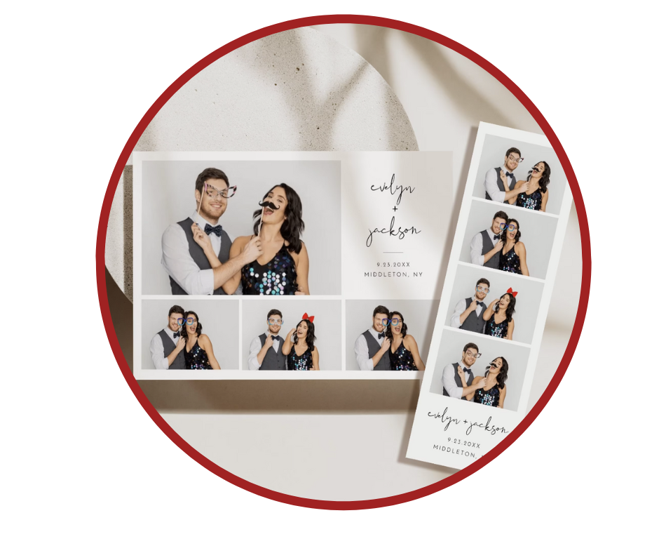 Capture the moment and keep the memory with our photo booth prints. Our prints come in the popular size of 4x6 ( or 2x6 photo strips) and templates can be designed any way you want.
